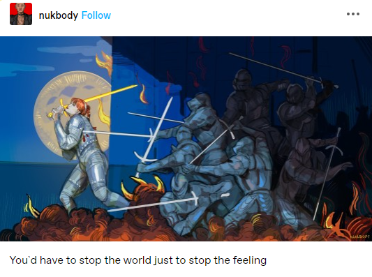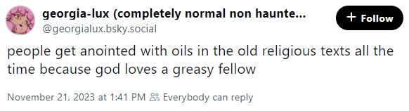 I’ve been watching Kaos on Netflix, which is a very good show! Modern Greek pantheon, very gay, and Orpheus is very Hillsong-coded. Give it a go! Also you'll be thrilled to know that my Bard in Baldur's Gate 3 has had a conversion experience in the Githyanki creche and taken a single level of Life Cleric (worshipping Lathander, naturally).