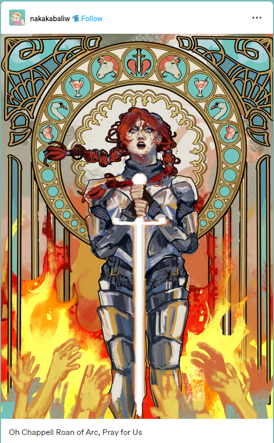 It really is kind of wild how such an ardent Catholic has become de facto patron saint of queer and rebellious women, but that’s religion for you. St Joan pray for us!