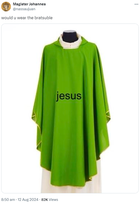 I posted something from this creator in the last edition and said I couldn’t work out if it’s ironic or not. Since then, my zoomer Christian friend told me she’s legit. The just really loves the Catholic Church and loves to post. I support it.