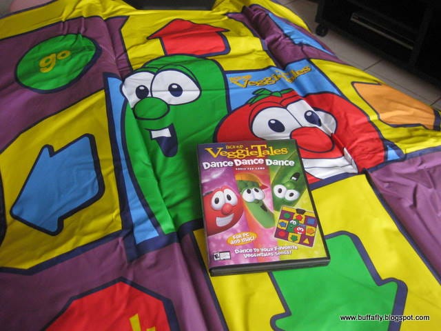 Stop everything! There is a VeggieTales dancing game with a dance mat