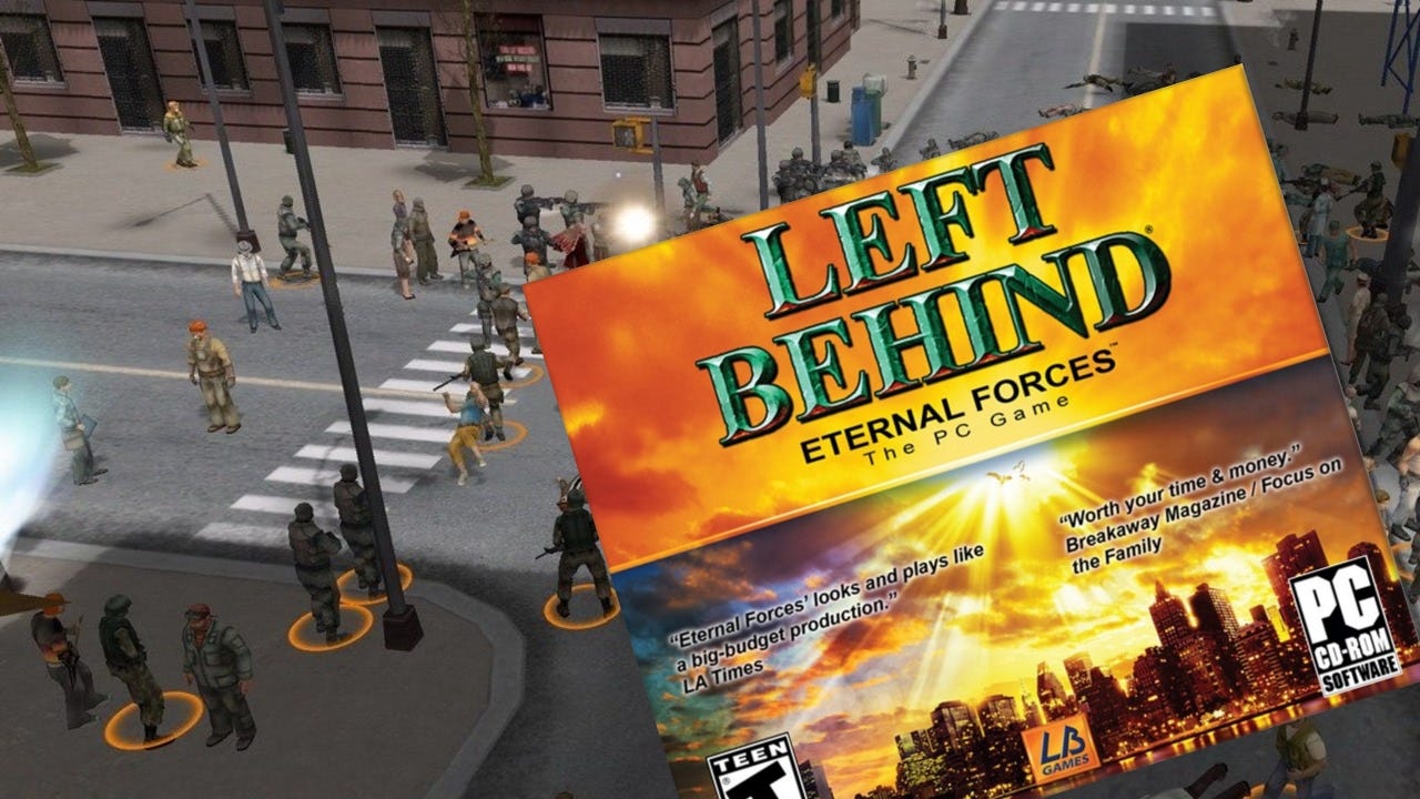 I could not believe my eyes, but everyone’s favourite sucked-in-we-win Christian apocalypse book series was made into a video game. It came out in 2006 and it’s called Left Behind: Eternal Forces.