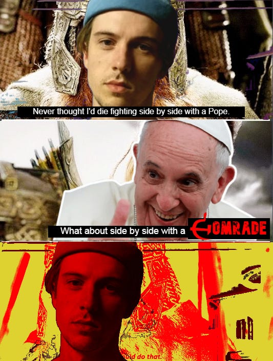 I think there’s further analysis that could be done about how Pope Francis is perceived by people inside and outside the Catholic Church. In the very first issue of Relics I wrote about Liz Bruenig and how she short-circuits the established left-right political spectrum. I think the Pope does the same, while making all the same kinds of people confused and angry.