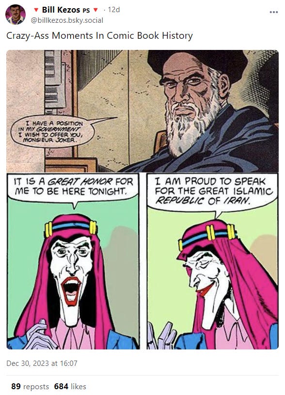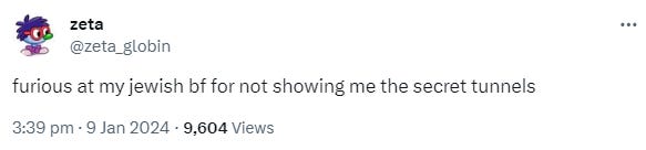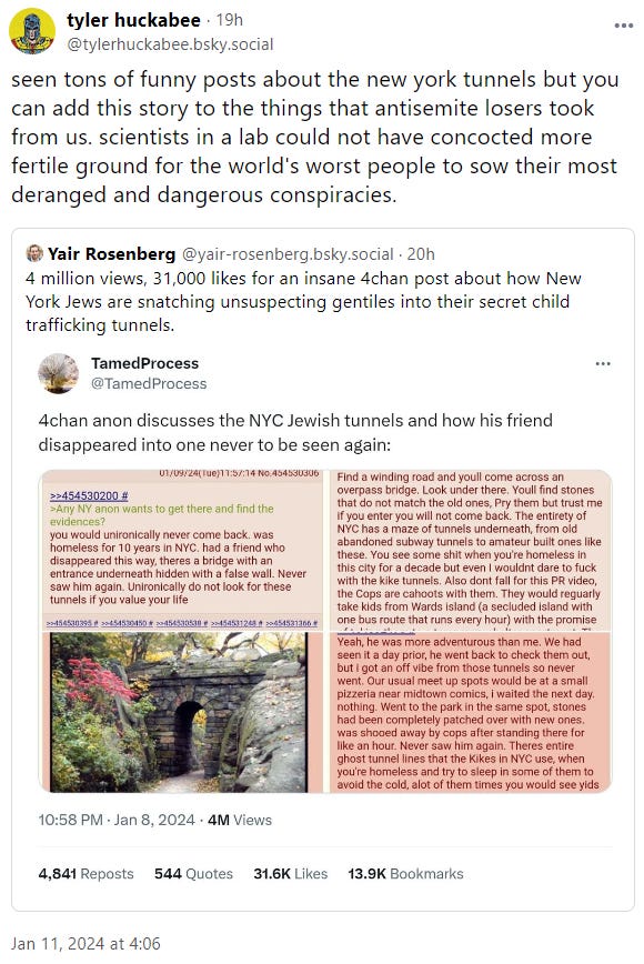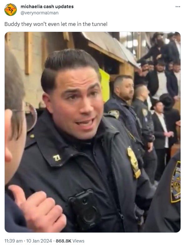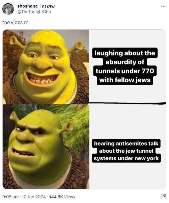 Anyway, the Chabad-Lubavitch Headquarters has made a statement blaming the whole incident on "a group of young agitators". I'll write about this again if it generates more content, but to be honest, the antisemitism on Twitter/X is so oppressive I doubt that's going to happen.