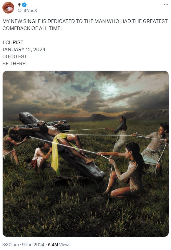 Perhaps it has already dropped even as you read this, but the point of this post isn't about the single itself, but Lil Nas X's promo on Twitter/X and TikTok, and the reaction to it.