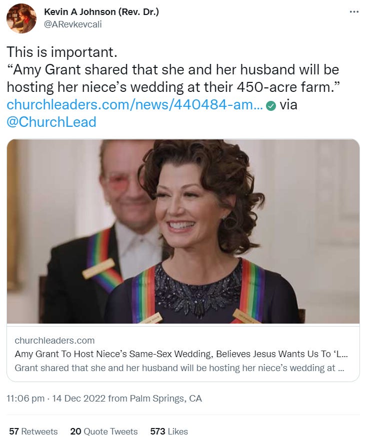 Crossover Christian music superstar Amy Grant will be hosting her niece’s same-sex wedding on her farm. Now the question is: Will Amy still get an invite to the Dove Awards?