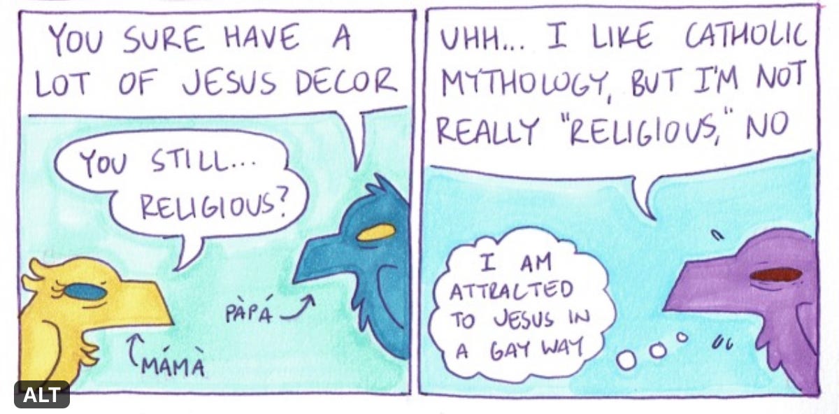 It continues, “I have complicated gender feelings about Judas”. Read the whole comic by @incendavery.
