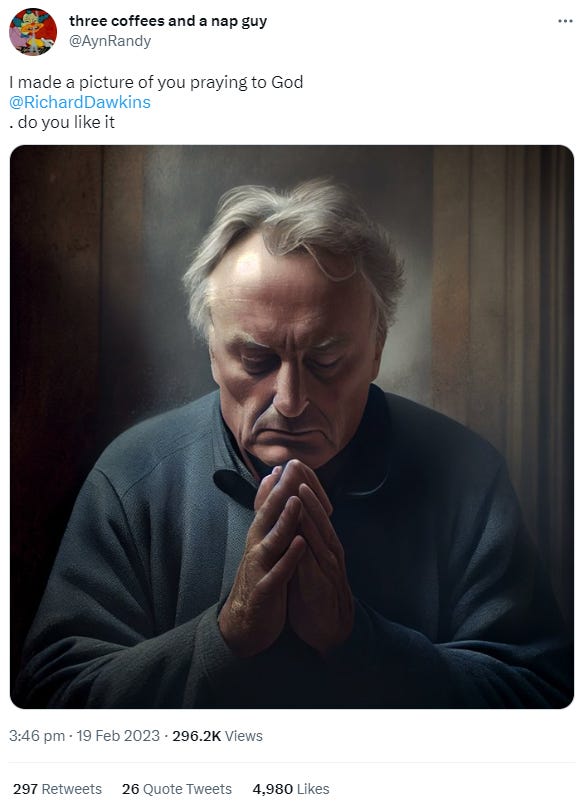 Lastly, a picture of Richard Dawkins that was absolutely not made with AI. It is a real picture of Richard Dawkins