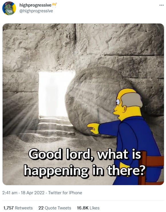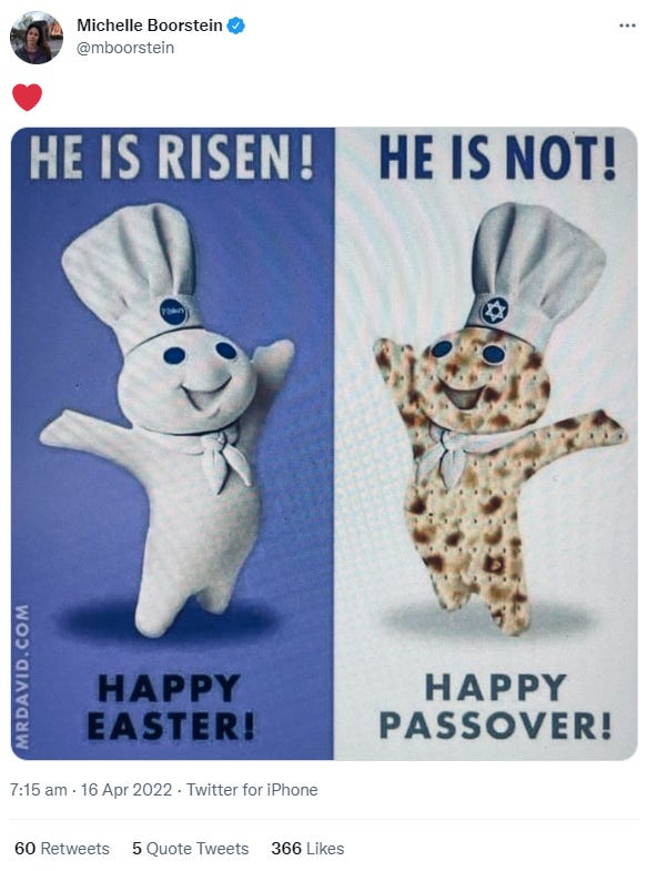 Heres a… Jewish Easter joke(?) to make up for it.