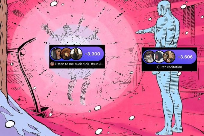 There’s also been a Quran recitation that attracted thousands of listeners, which is cool, but it also caused this incongruous situation to come up on more than one person’s feed.