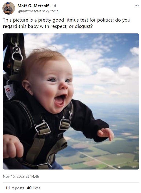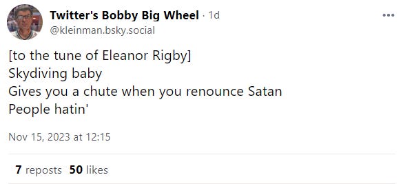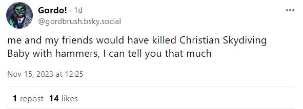Bluesky has been awash with skydiving Christian baby discourse the last few days, and I was very confused by it all and had to go looking for an explaination!